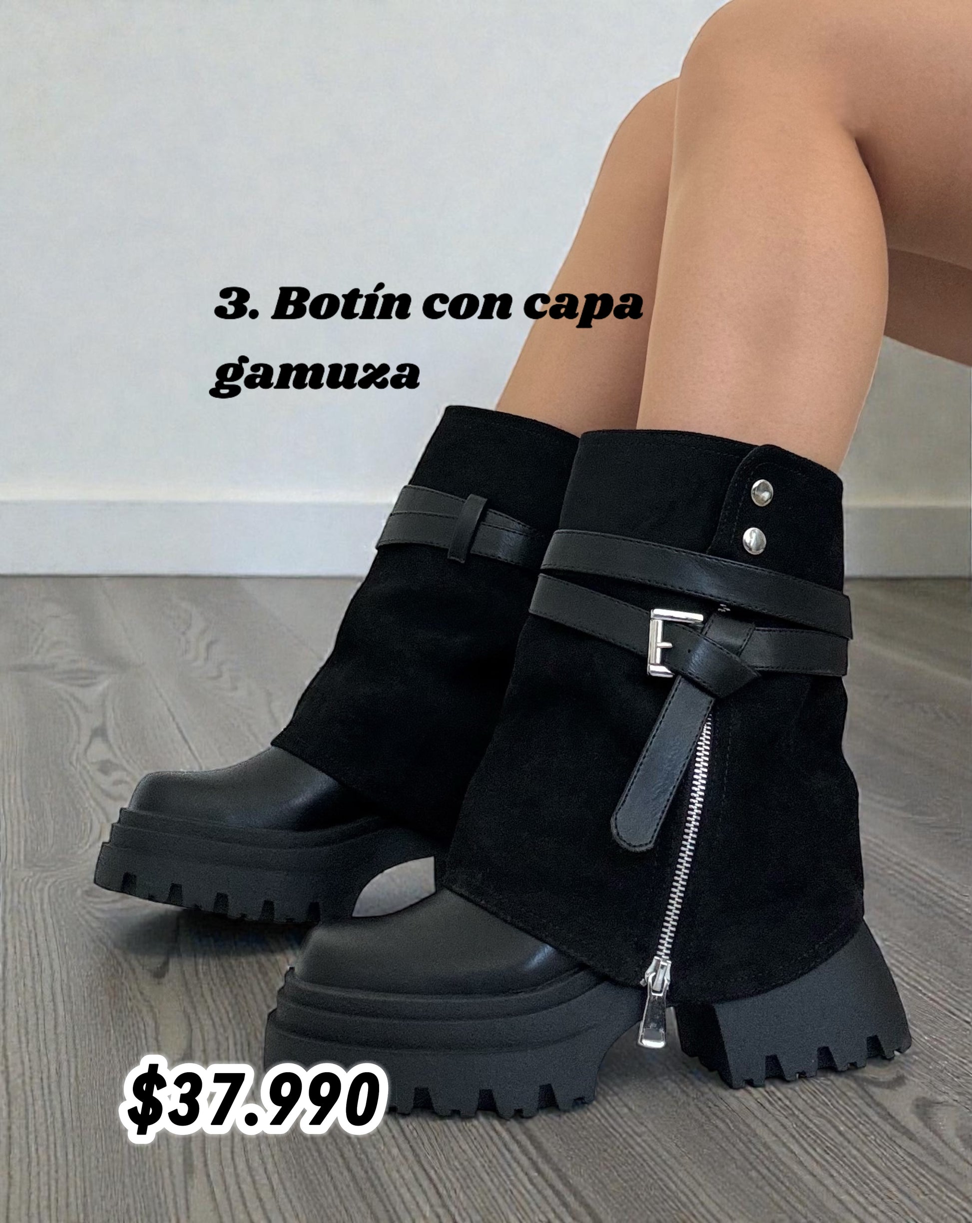 Este diseño exclusivo incluye dos capas superiores intercambiables, que permiten convertir un botín clásico en una bota estilizada. ¡Es como tener tres calzados en uno!
